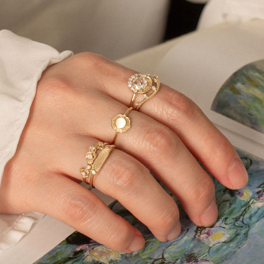 Inspired by masters like Van Gogh, Monet, and Renoir, the Impasto Collection transforms moments into gold, with gemstones set like colors on a canvas.