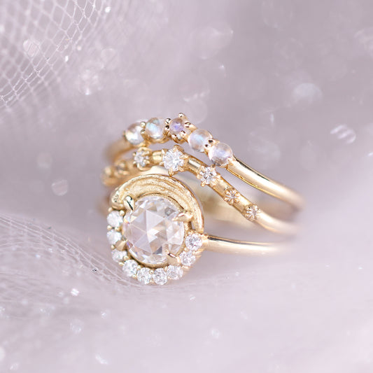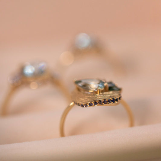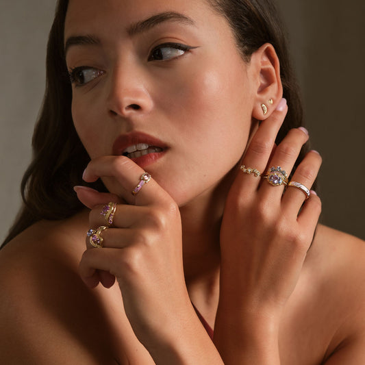 Our 14K solid gold fine jewelry is crafted to celebrate your golden moments, serving as timeless tokens of your cherished memories. The Impasto, Contour, Sgraffito, and Vanity collections blend gold and gemstones, with designs inspired by painting techniques and artists like Van Gogh, Monet, and Renoir. Each piece, designed by founder Eunmi Han, balances craftsmanship and artistry, resonating with emotion and serving as a lasting reminder of your unique golden moments.