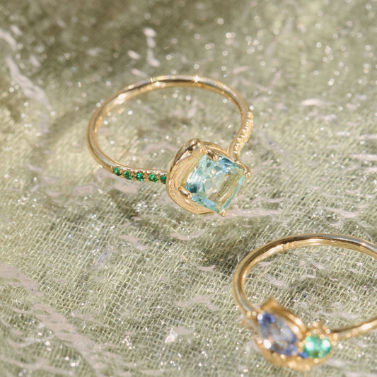 Rich textures, soft edges, and gemstones set like color on canvas.