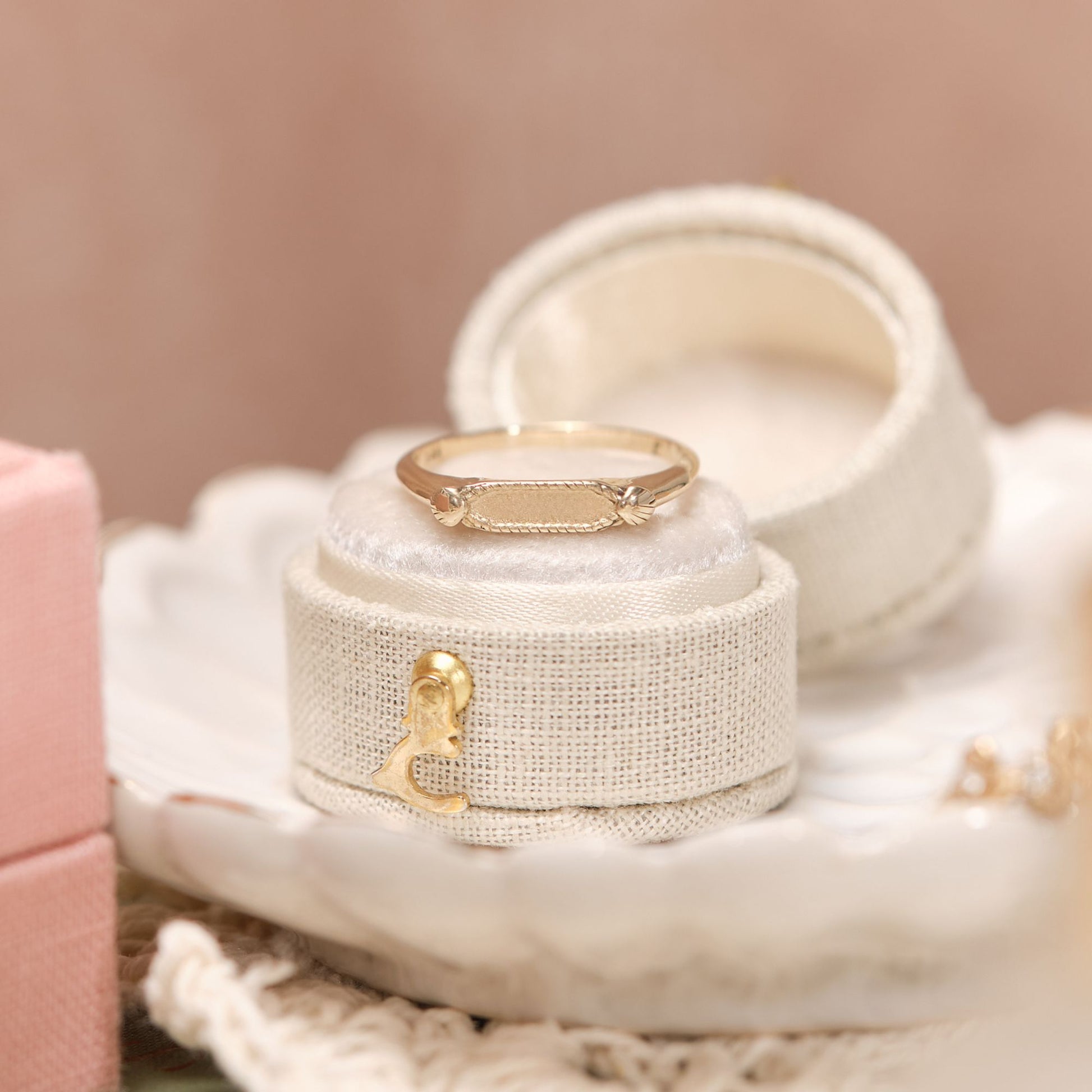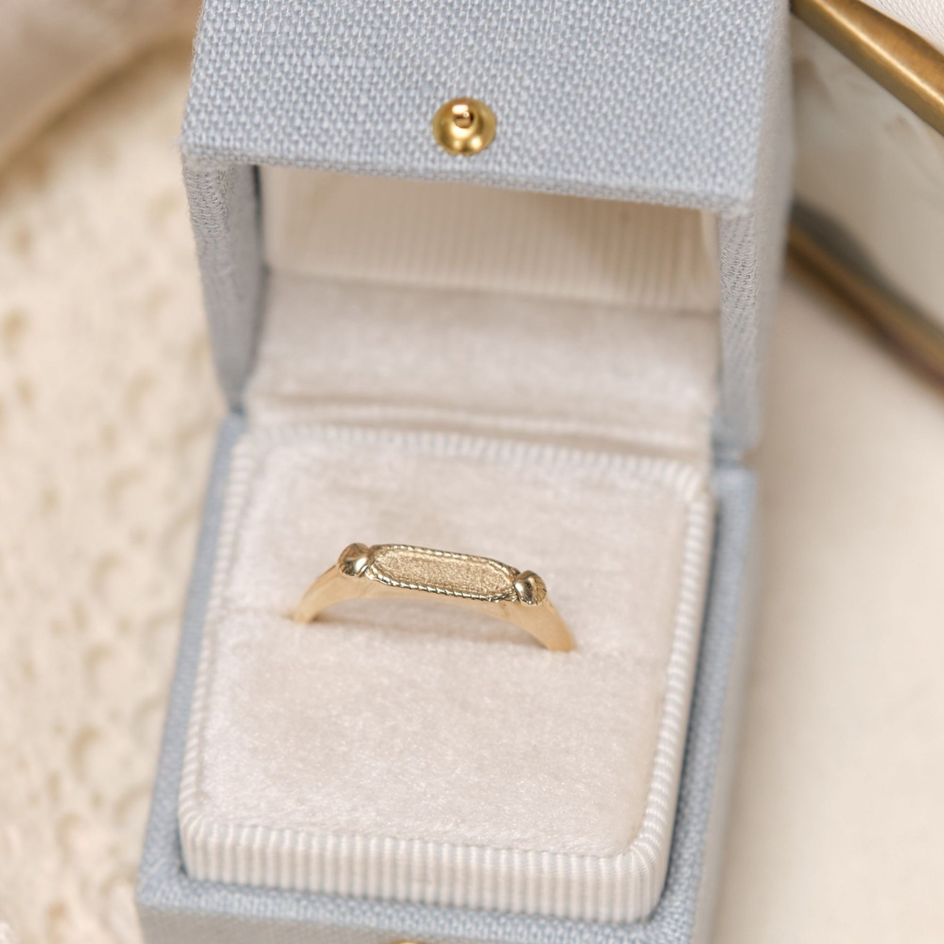 A refined take on the classic signet, the Artist’s Signature Plate ring embodies the elegance of simplicity. Its clean lines and smooth gold surface echo the gesture of a signature—bold yet understated, personal yet timeless. With every curve and angle, it radiates the grace of quiet elegance—like a final brushstroke that completes the composition.