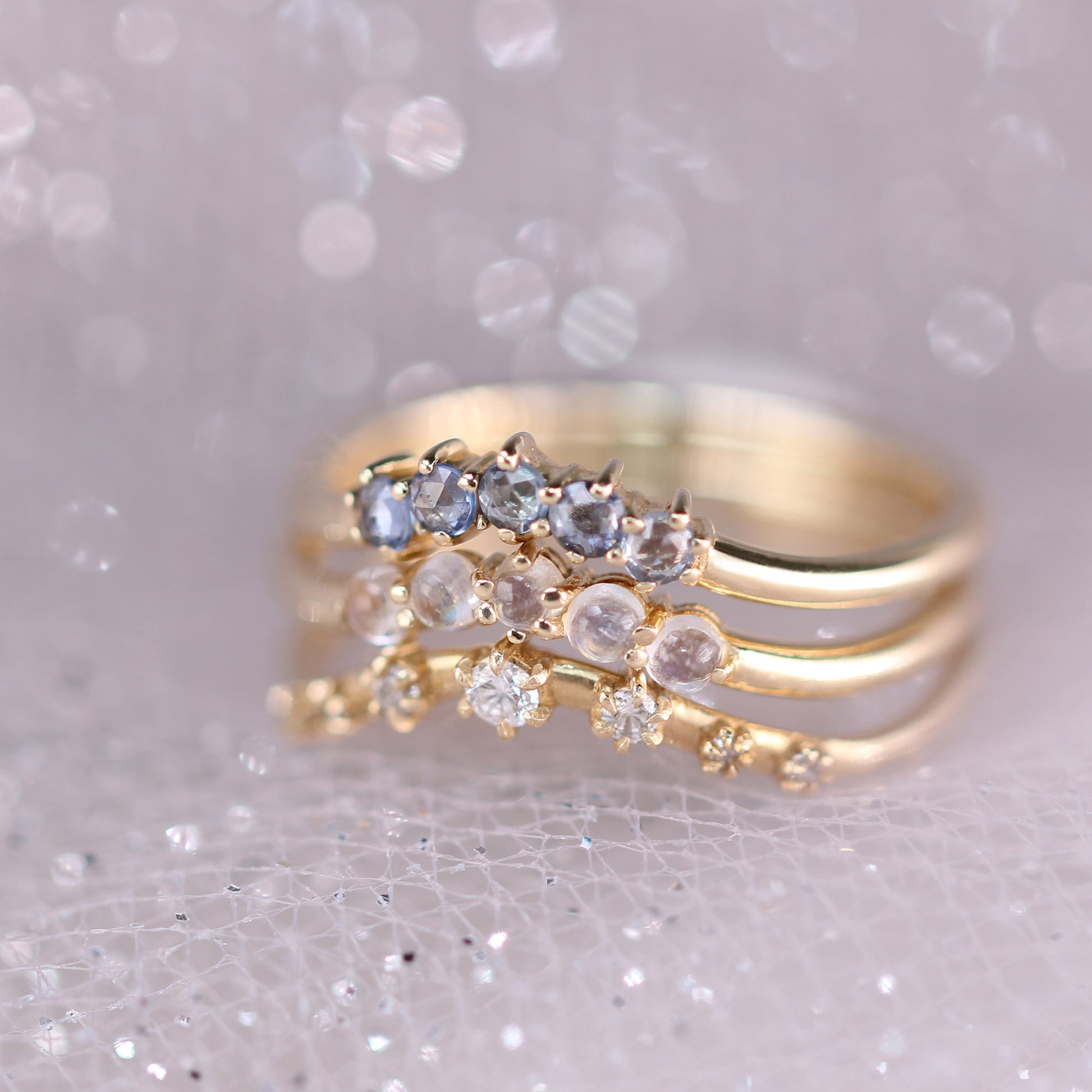 - Center Stones: Natural Blue Round Sapphire Rose cut 2 mm - 5 pcs