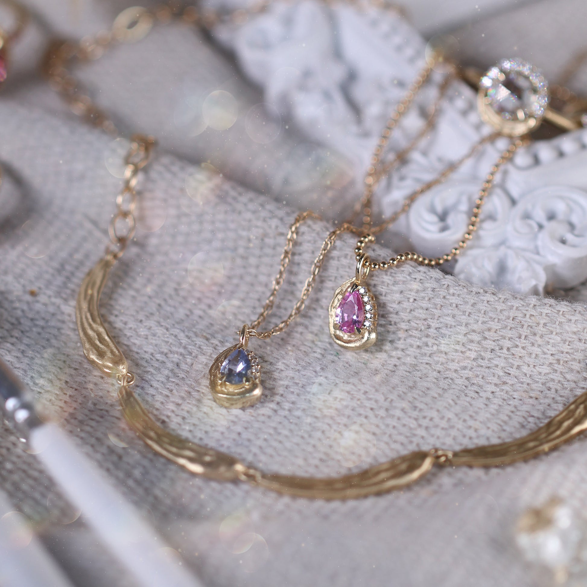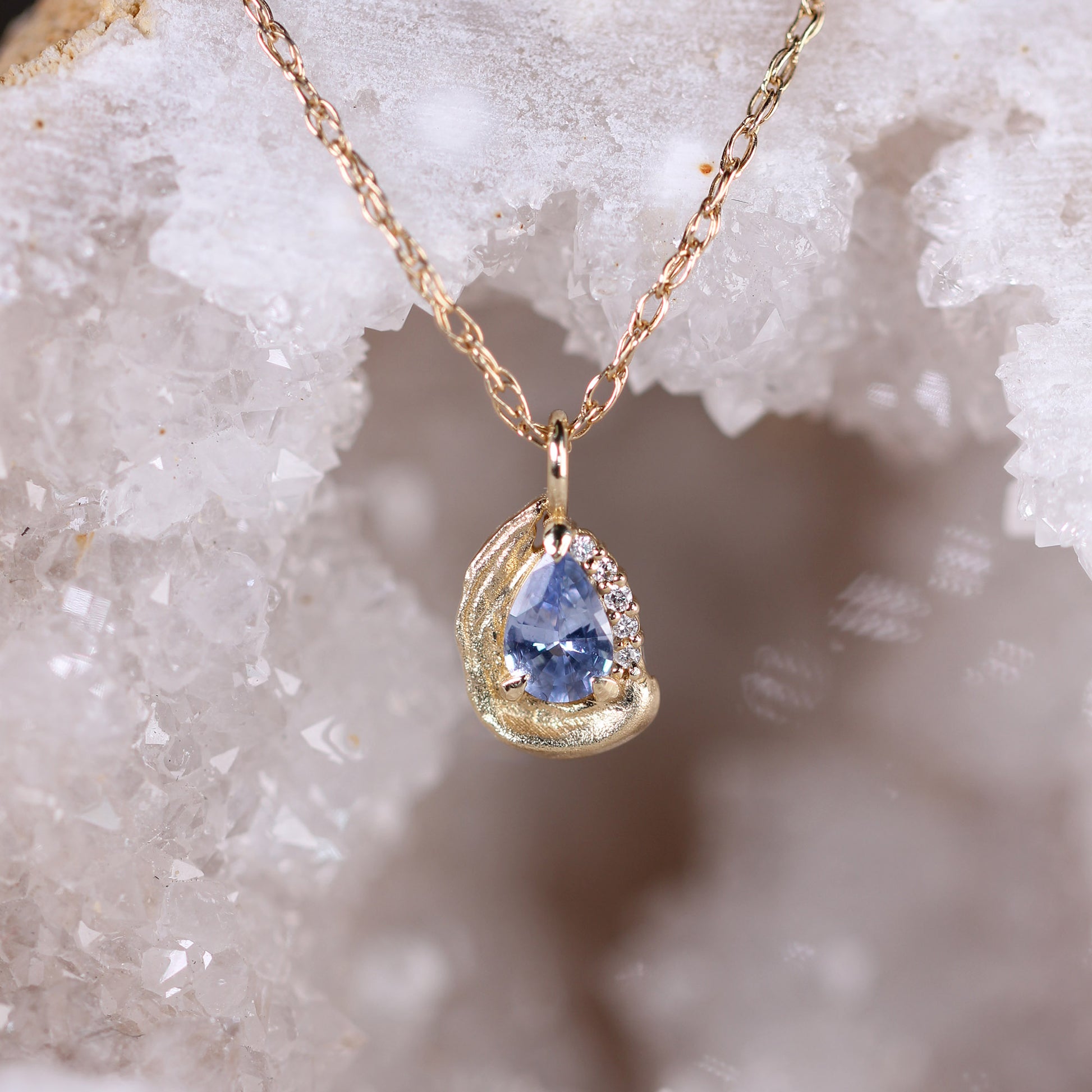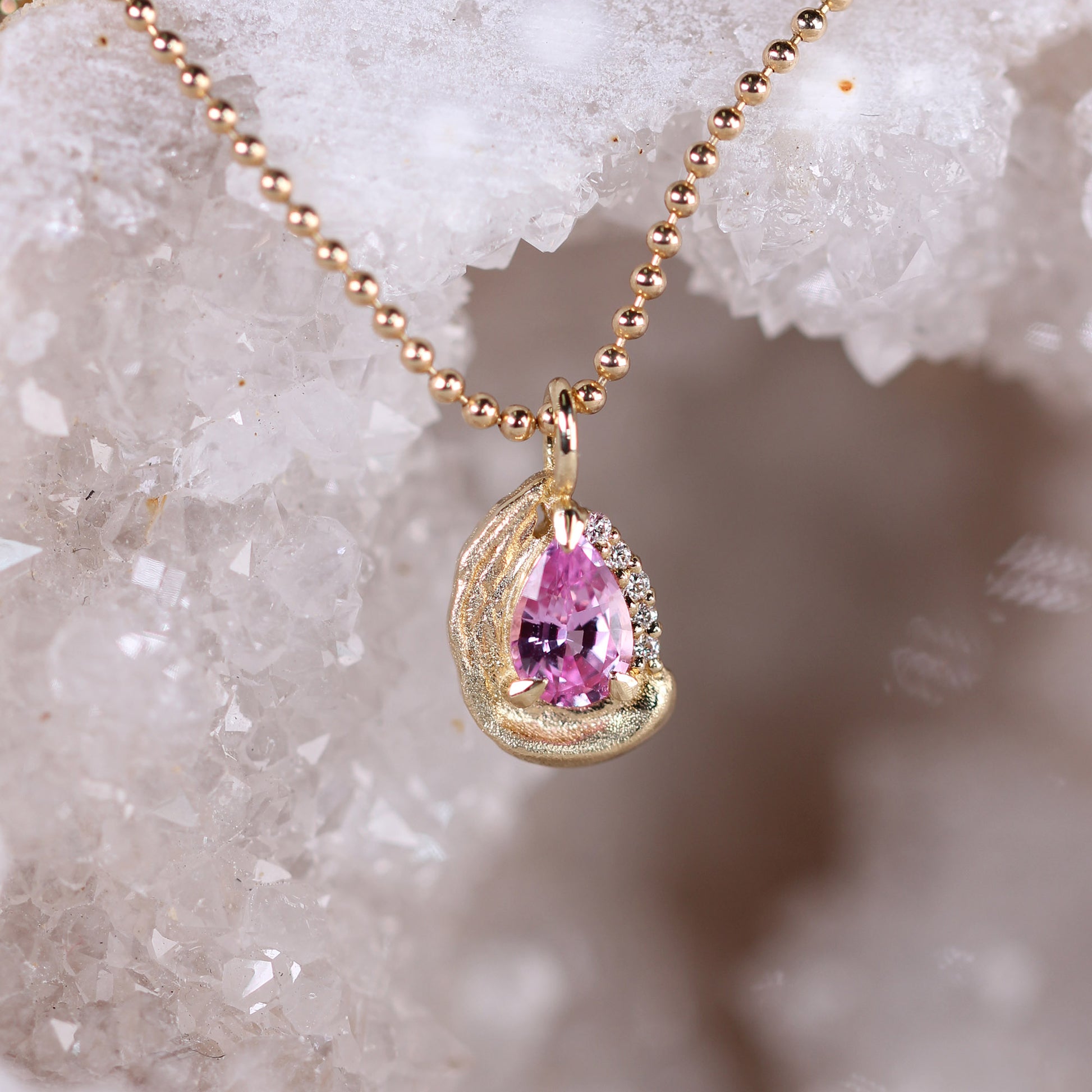 - Center Stone: Pink or Blue Pear Sapphire 6 X 4 mm 0.6 ctw