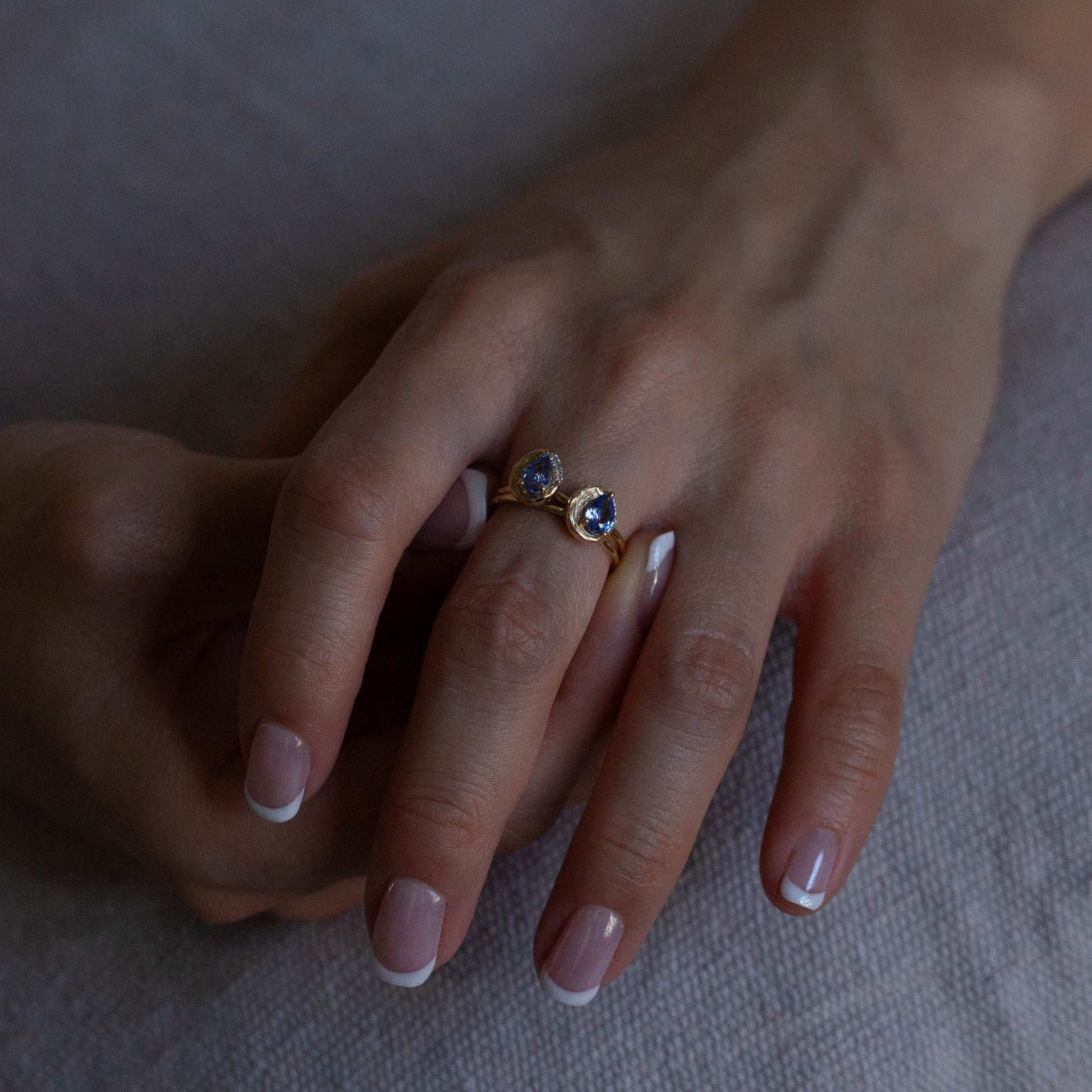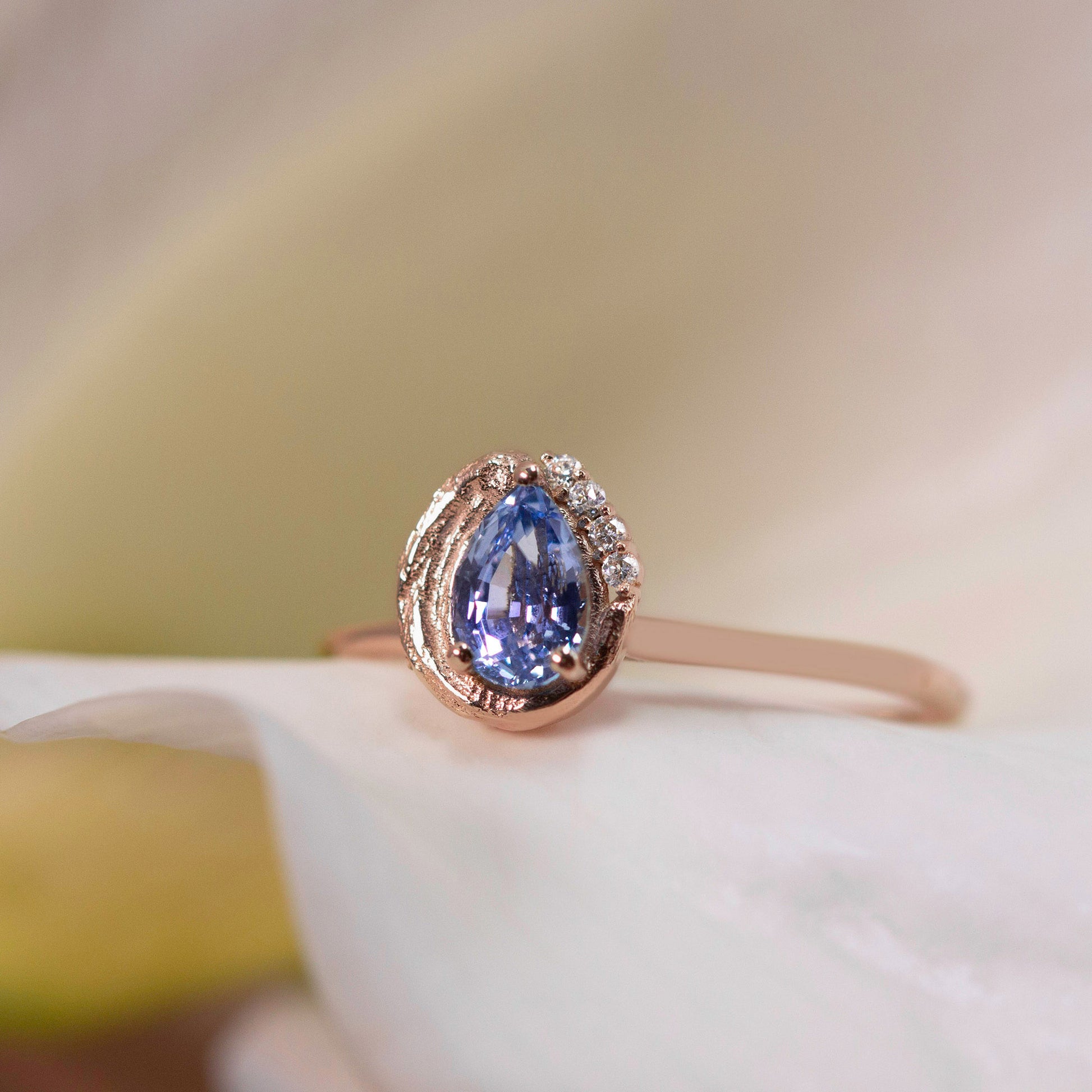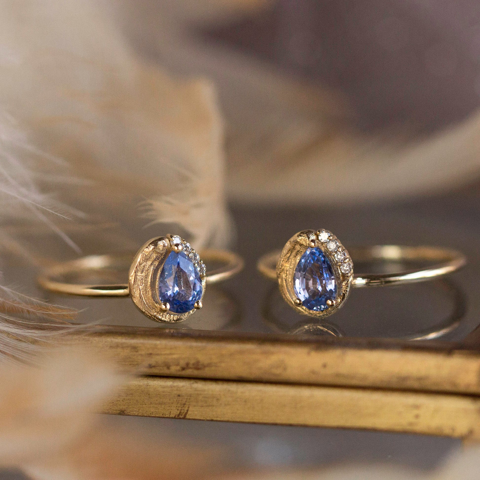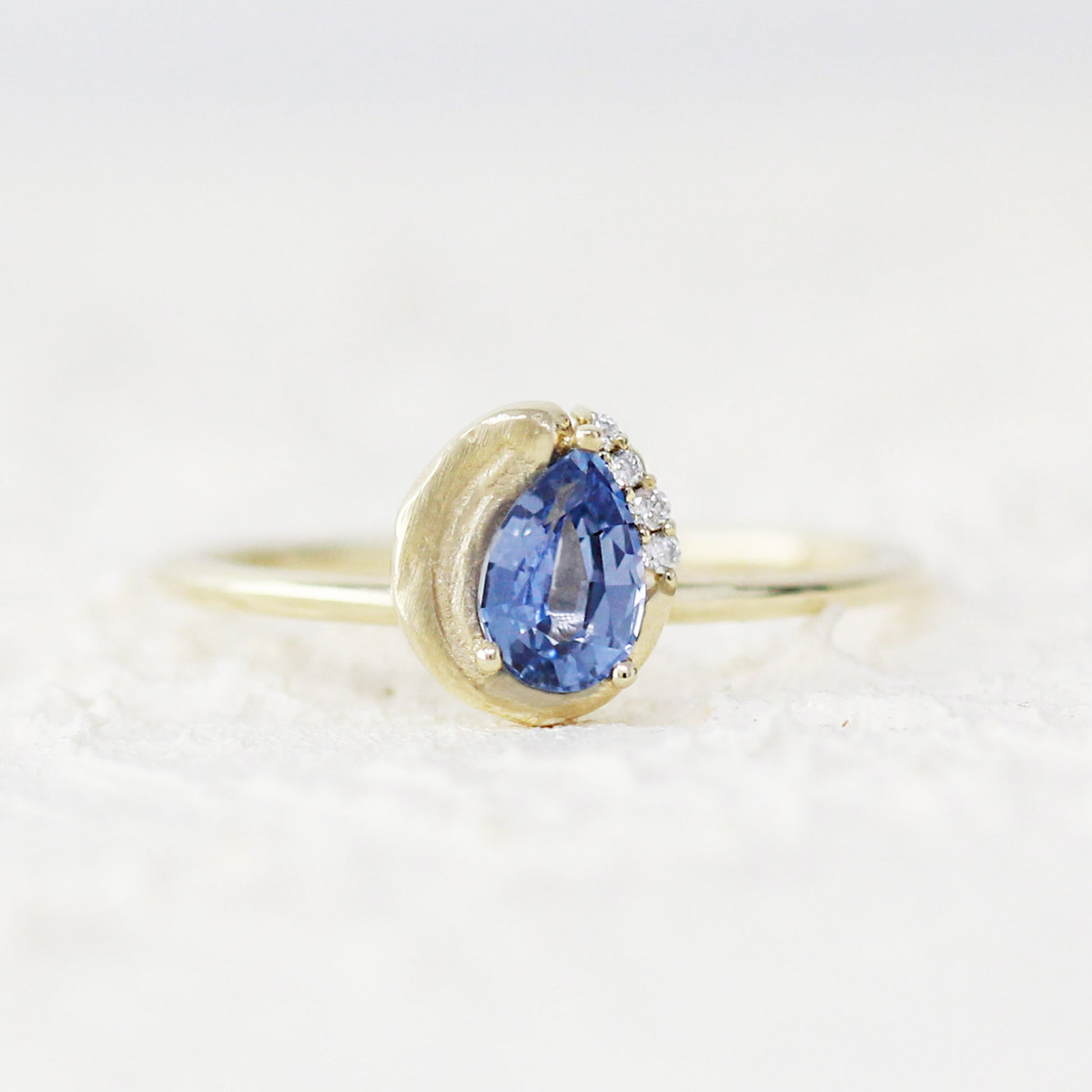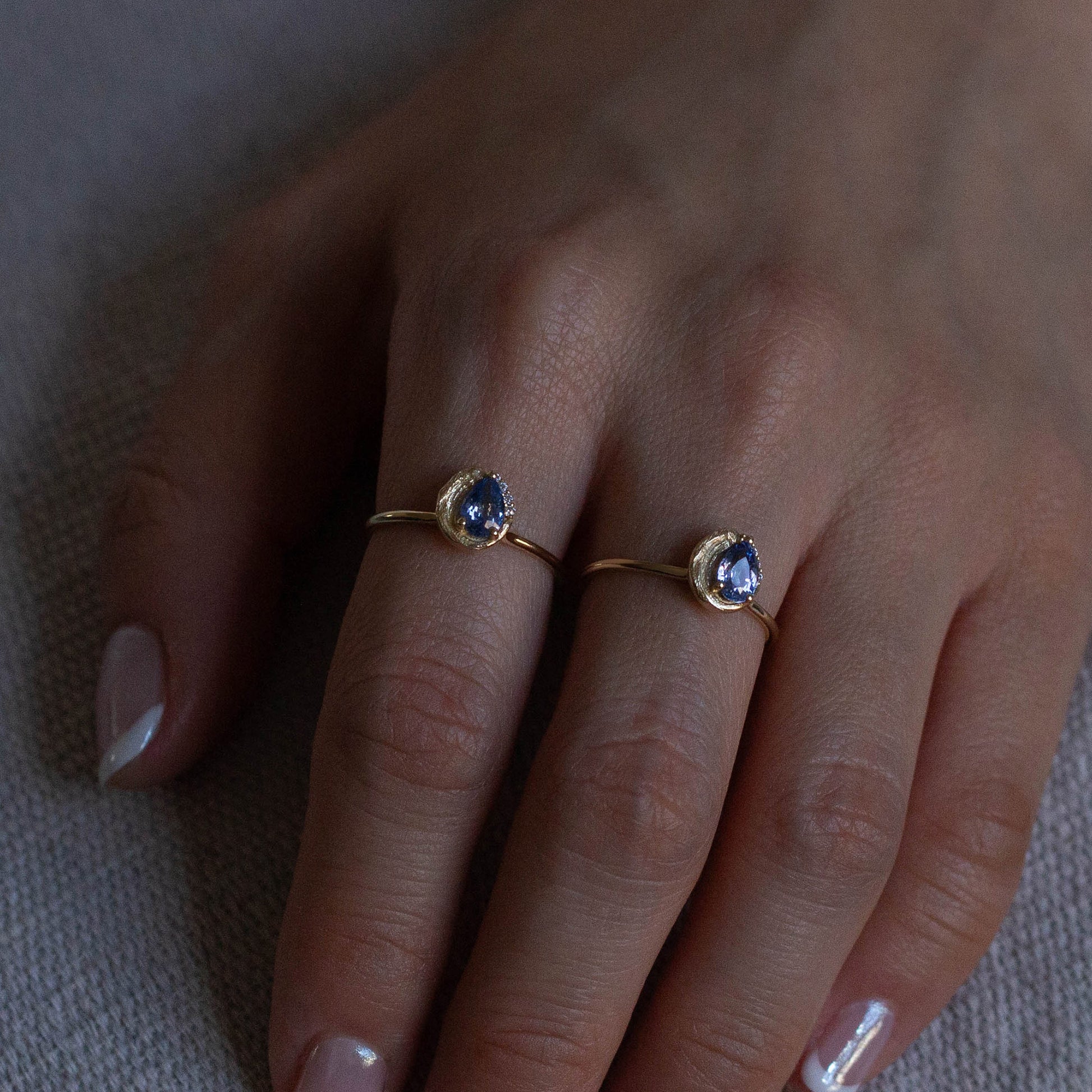 - Center Stone: Blue Pear Sapphire 6 X 4 mm 0.5 cts