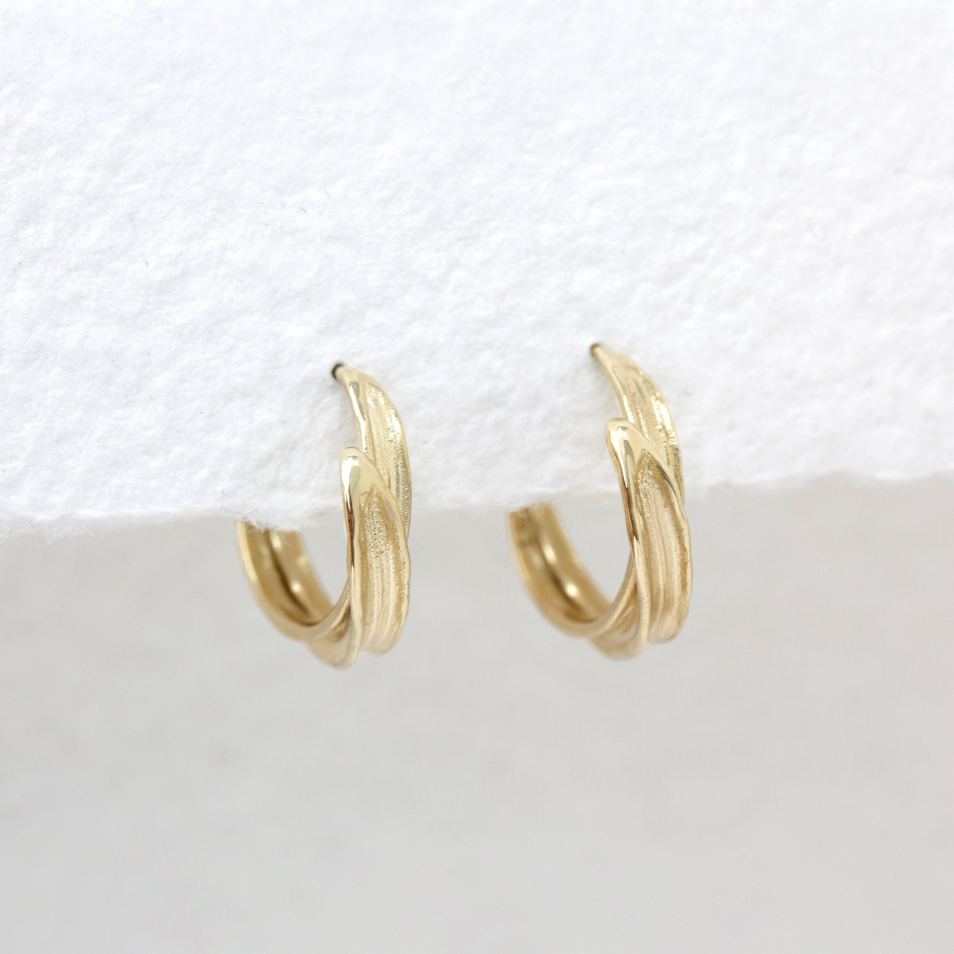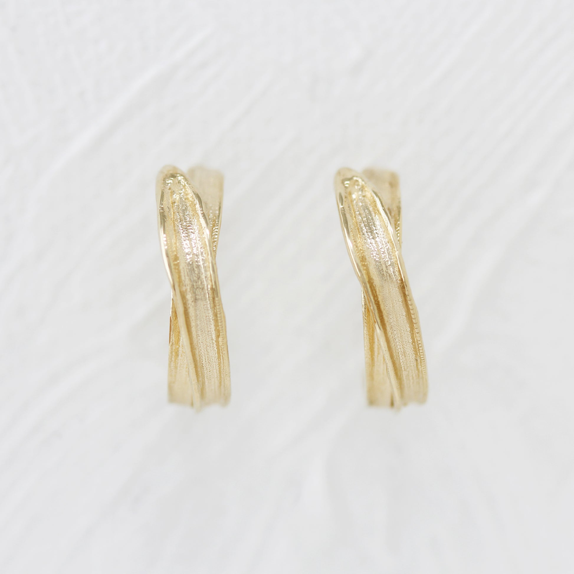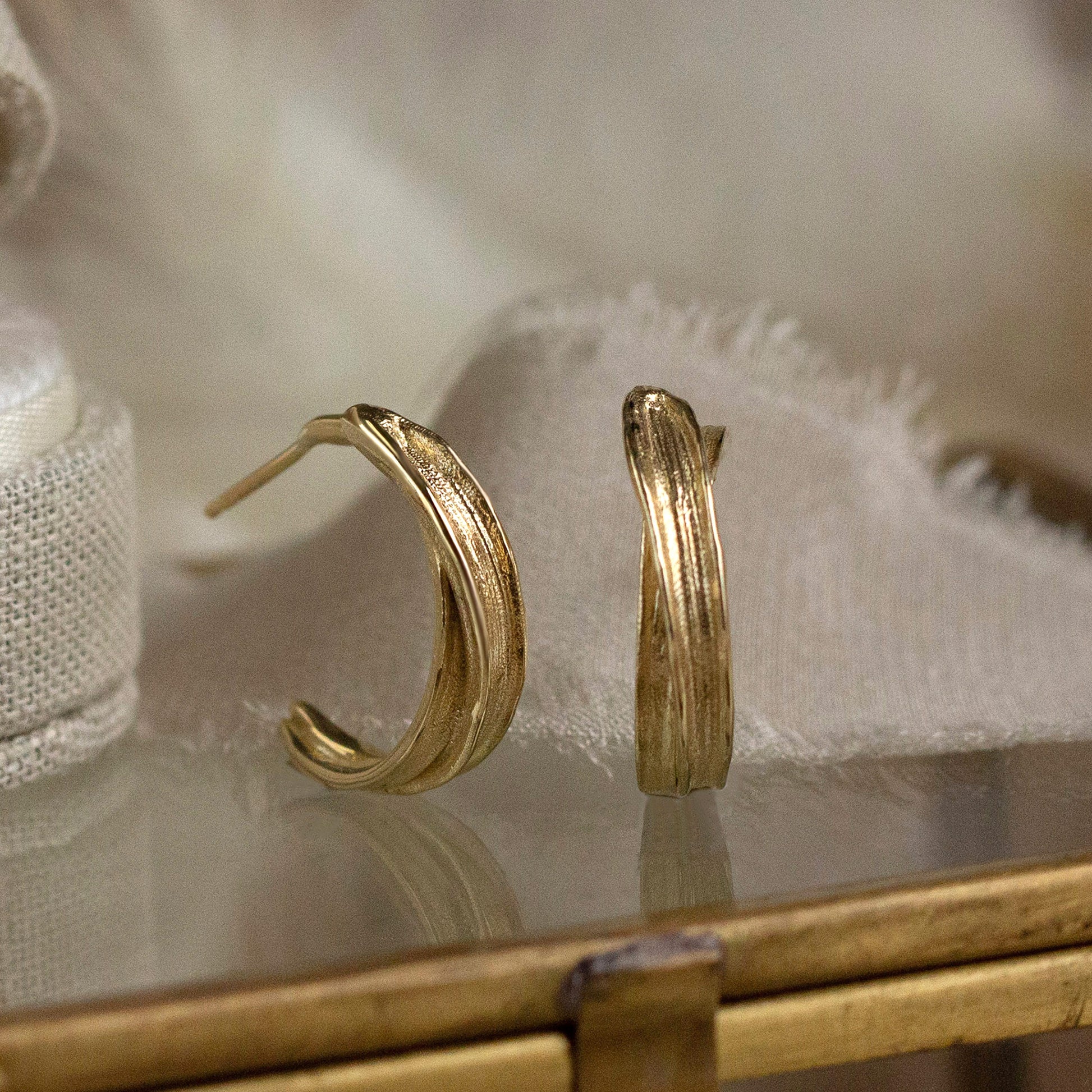 The Gleam Brushstroke is a delicate half-hoop earring adorned with rich, layered textures that echo the strokes of a master’s brush. Simple yet effortlessly elegant, it transitions seamlessly from the ease of daily wear to the romance of candlelit dinners.