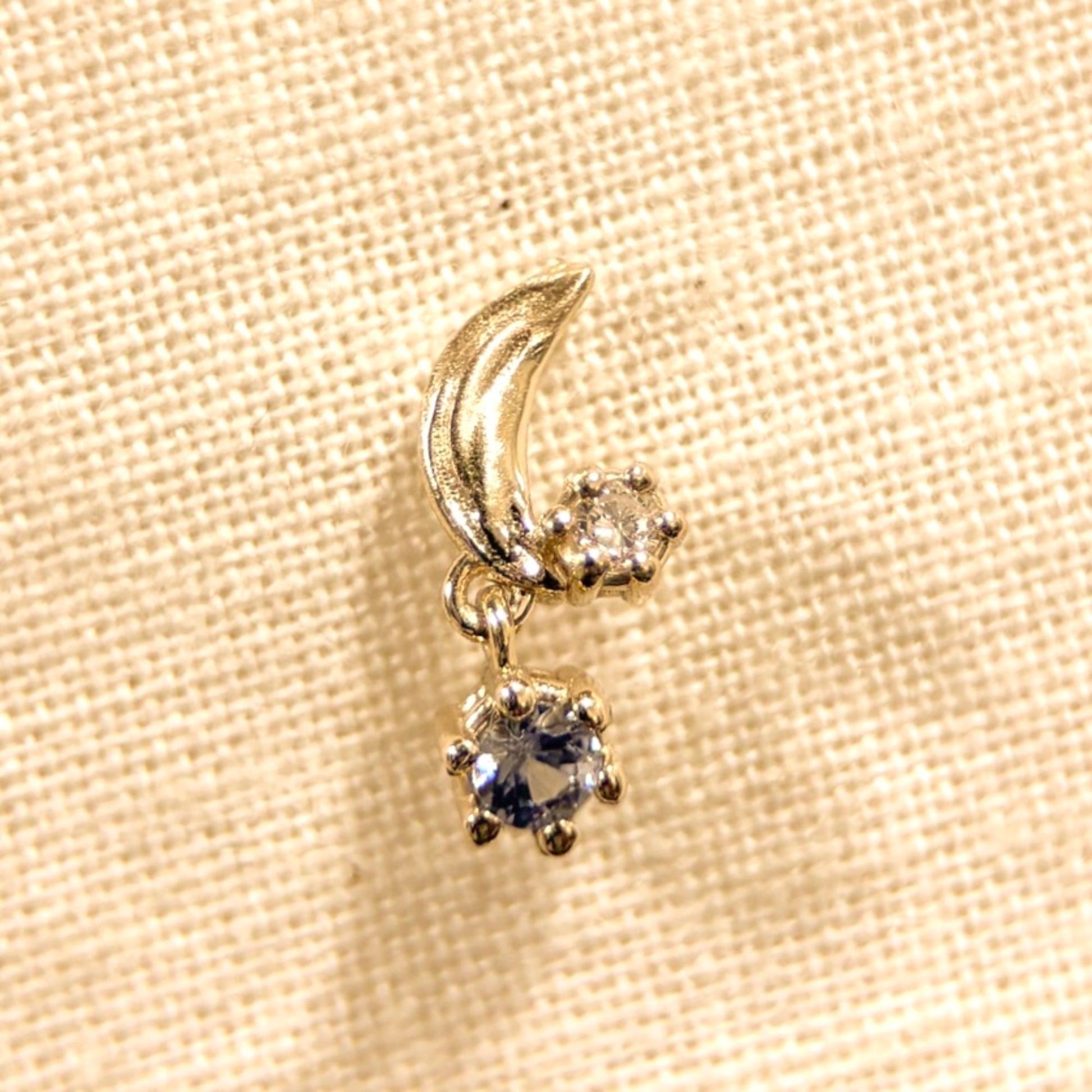 As the hush of night settles and the last glow fades, Moonstar captures the serene shimmer of twilight. A deep blue sapphire anchors the piece, while a single diamond glints beside it like a distant star caught in the quiet sky.