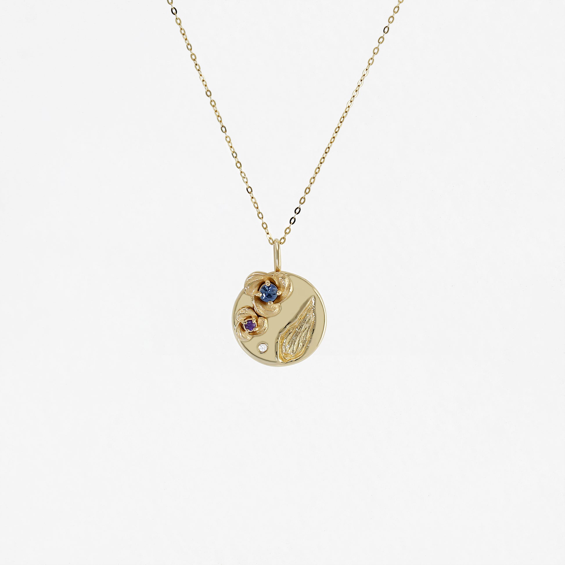 The Monet’s Pond Pendant is a painter’s palette come to life, blending the brilliance of two sapphires and a diamond with creamy brushstroke textures to create an exquisite tribute to artistry and nature.