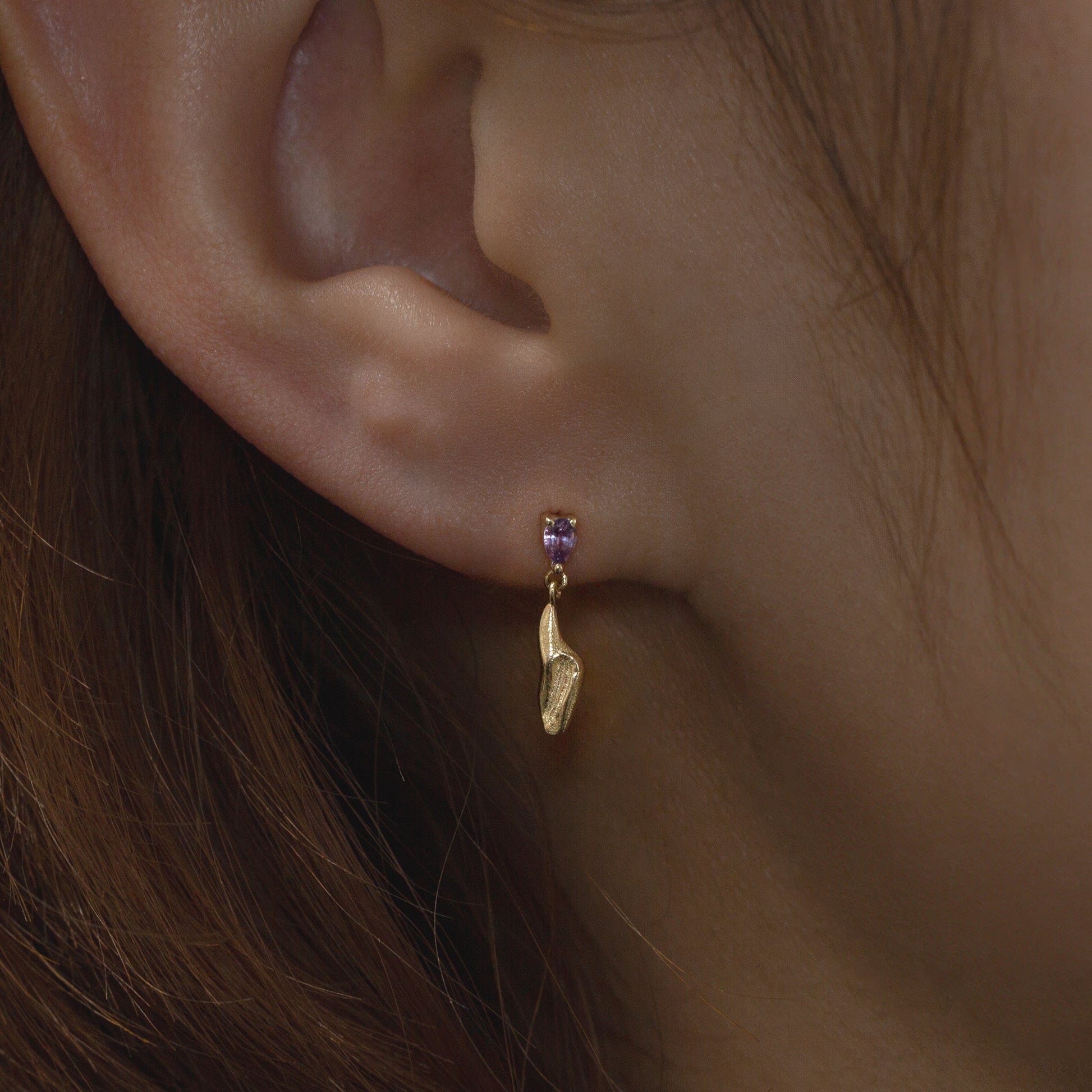 Like a painter’s brush trailing liquid gold, the Orchid Cascade Earring enchants with its delicate artistry. A pear-shaped sapphire, rich in allure, adorns the earlobe, while a creamy golden stroke flows downward, saying gracefully with each movement – a cascade of elegance and light.
