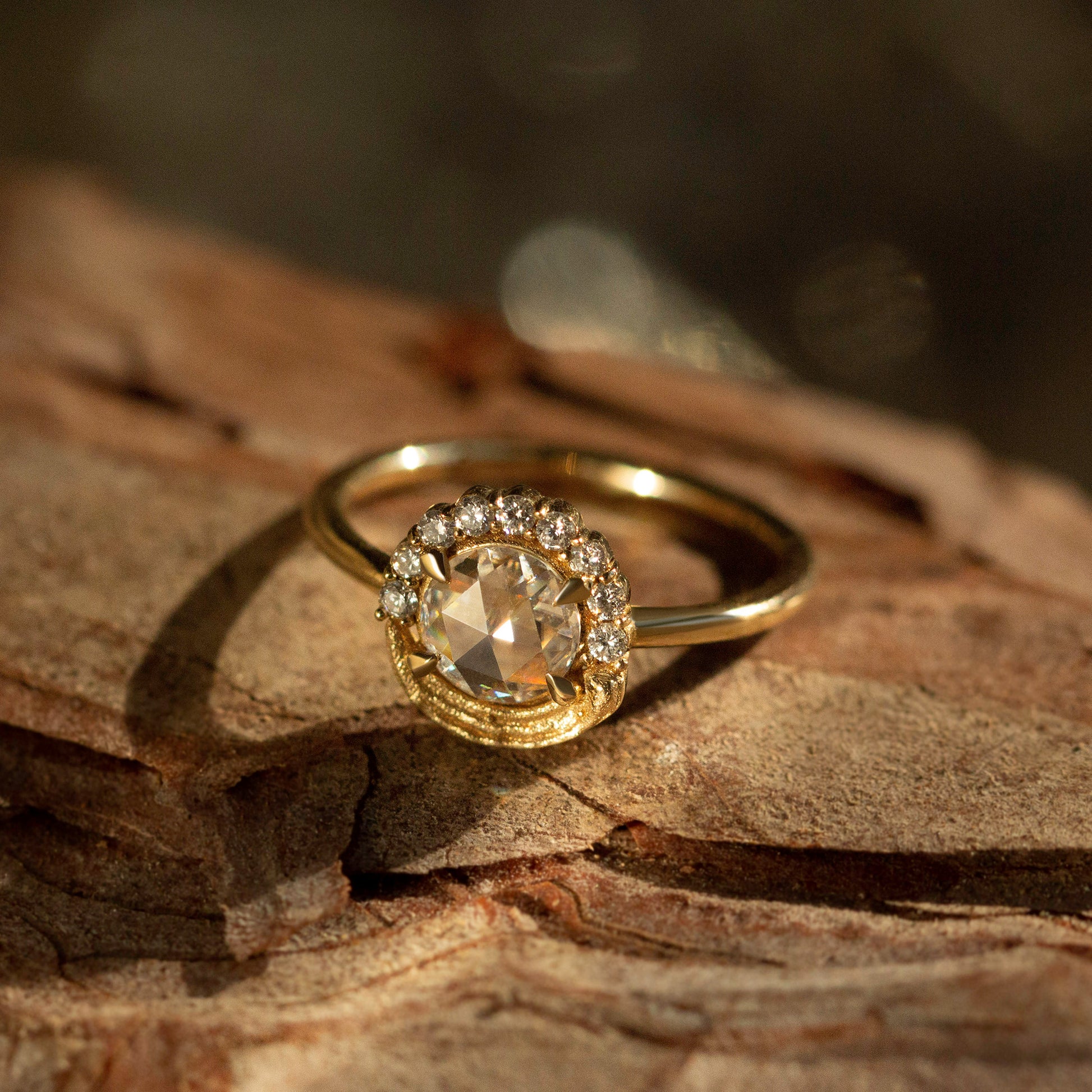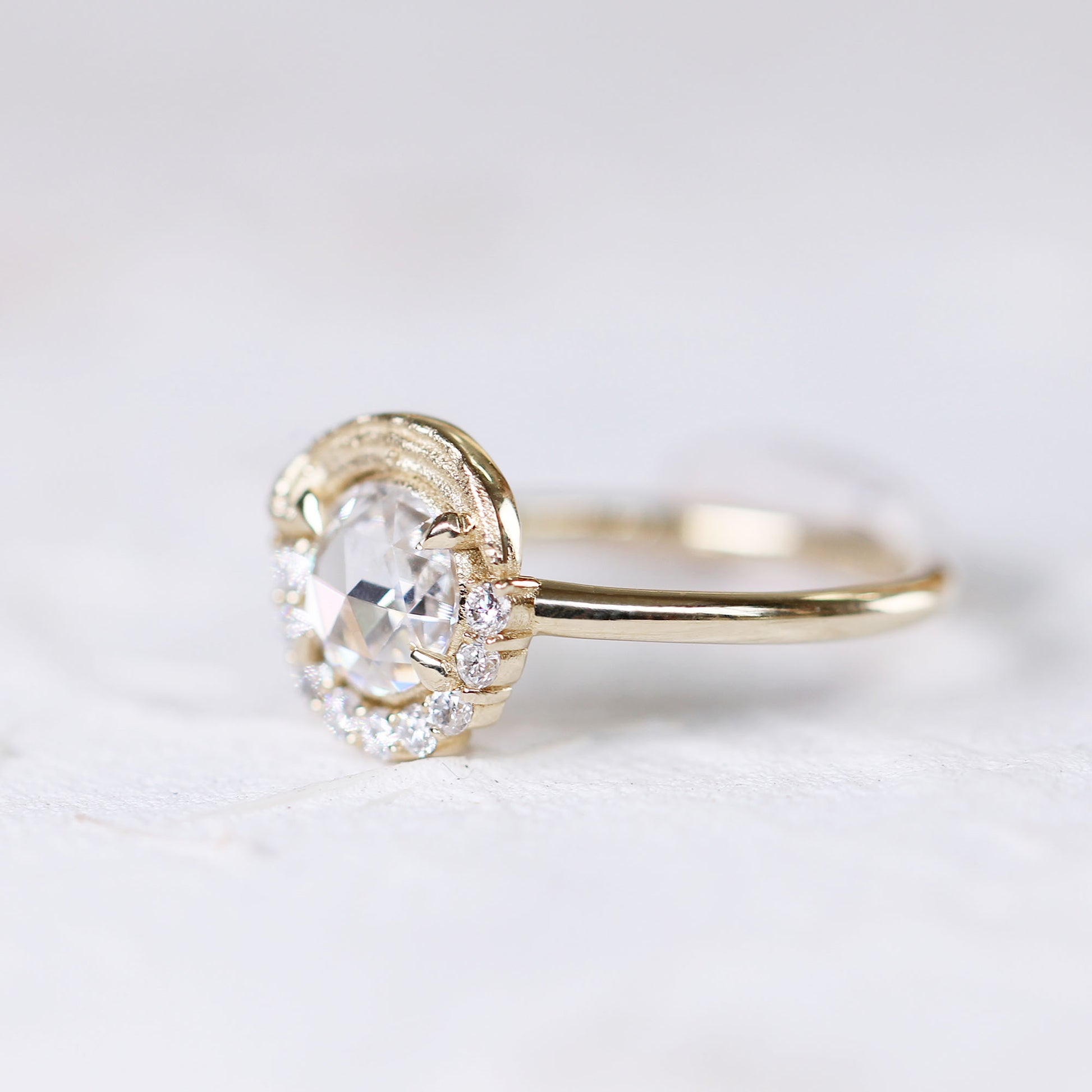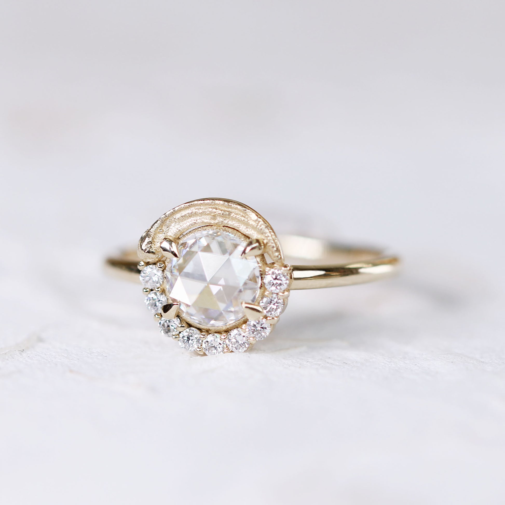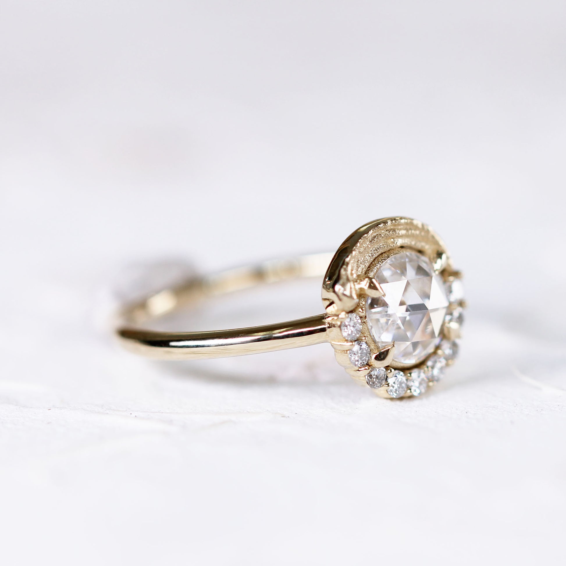 - Center Stone: G/H VS-SI White Rose Cut Round Diamond 6.8 mm 0.8 ctw