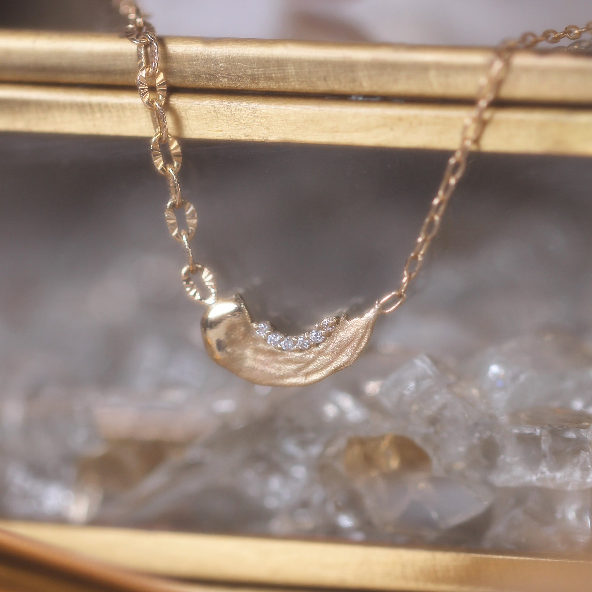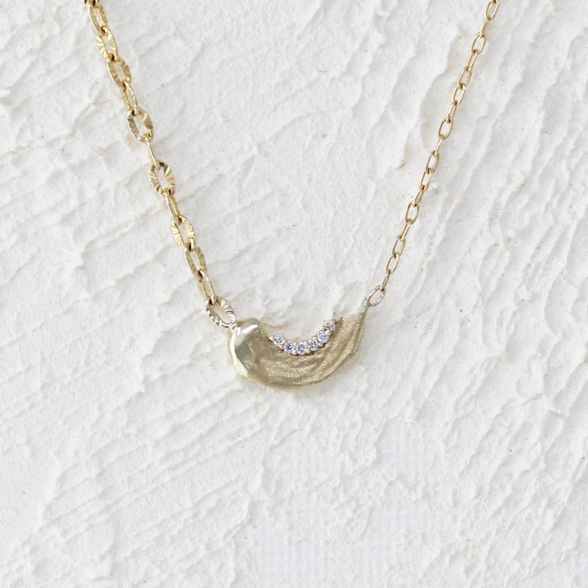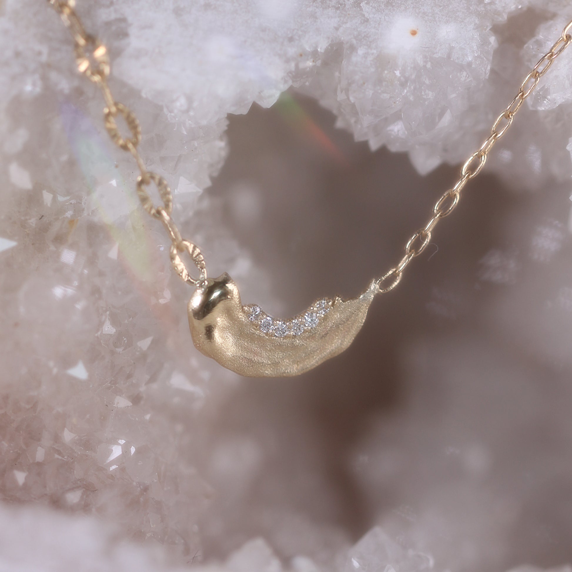 The Renoir Necklace showcases six scintillating diamonds elegantly arranged along a creamy gold, single-brushstroke pendant. The finely crafted details capture the fluidity of a brushstroke, from its graceful start to its polished finish. Minimal yet striking, this timeless design makes for an exquisite statement piece to cherish every day.