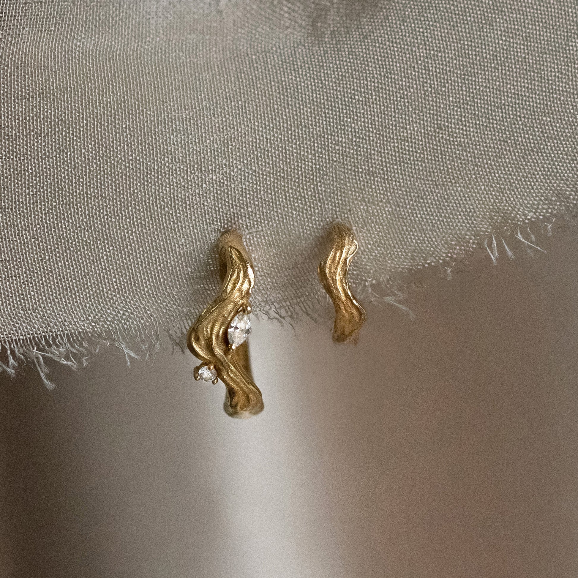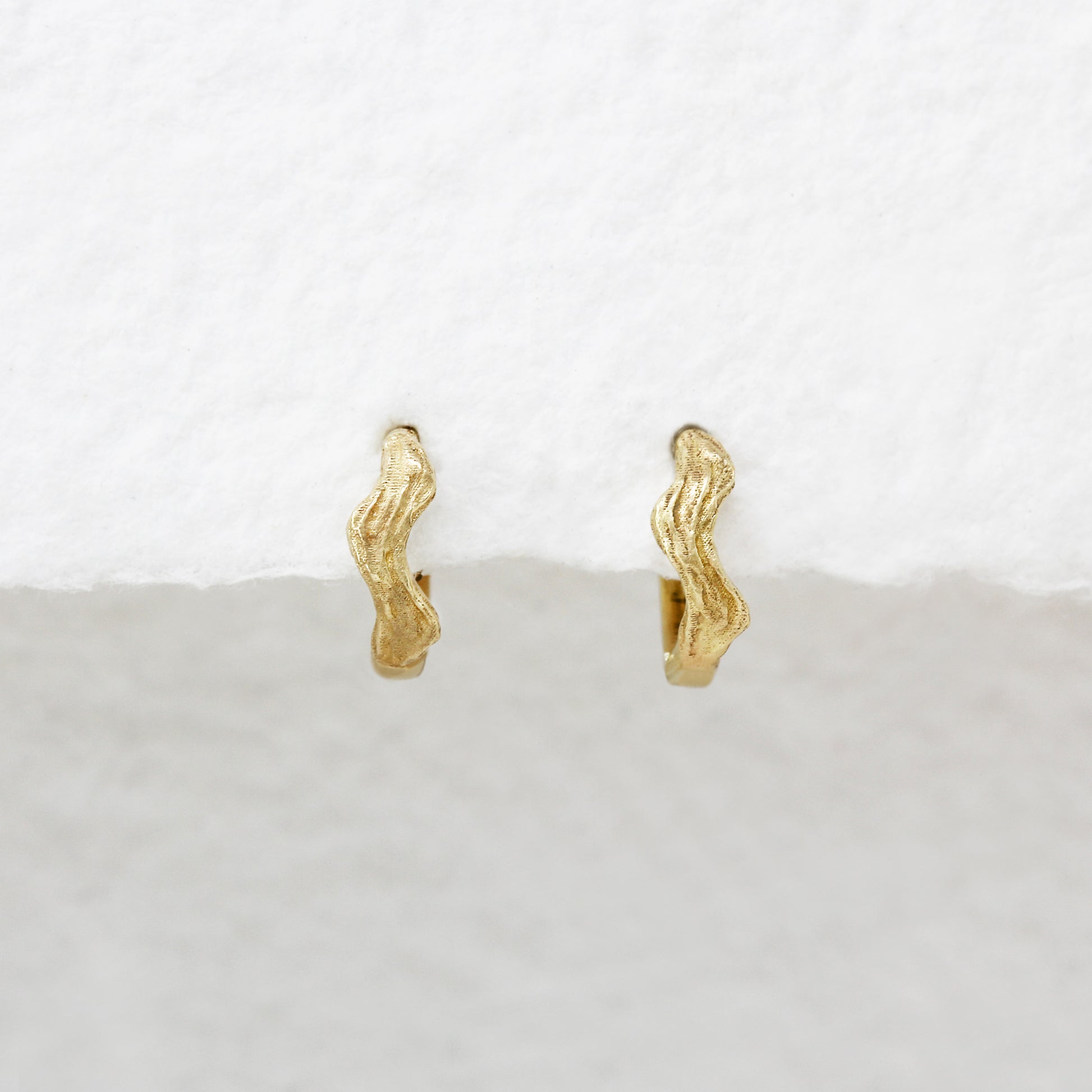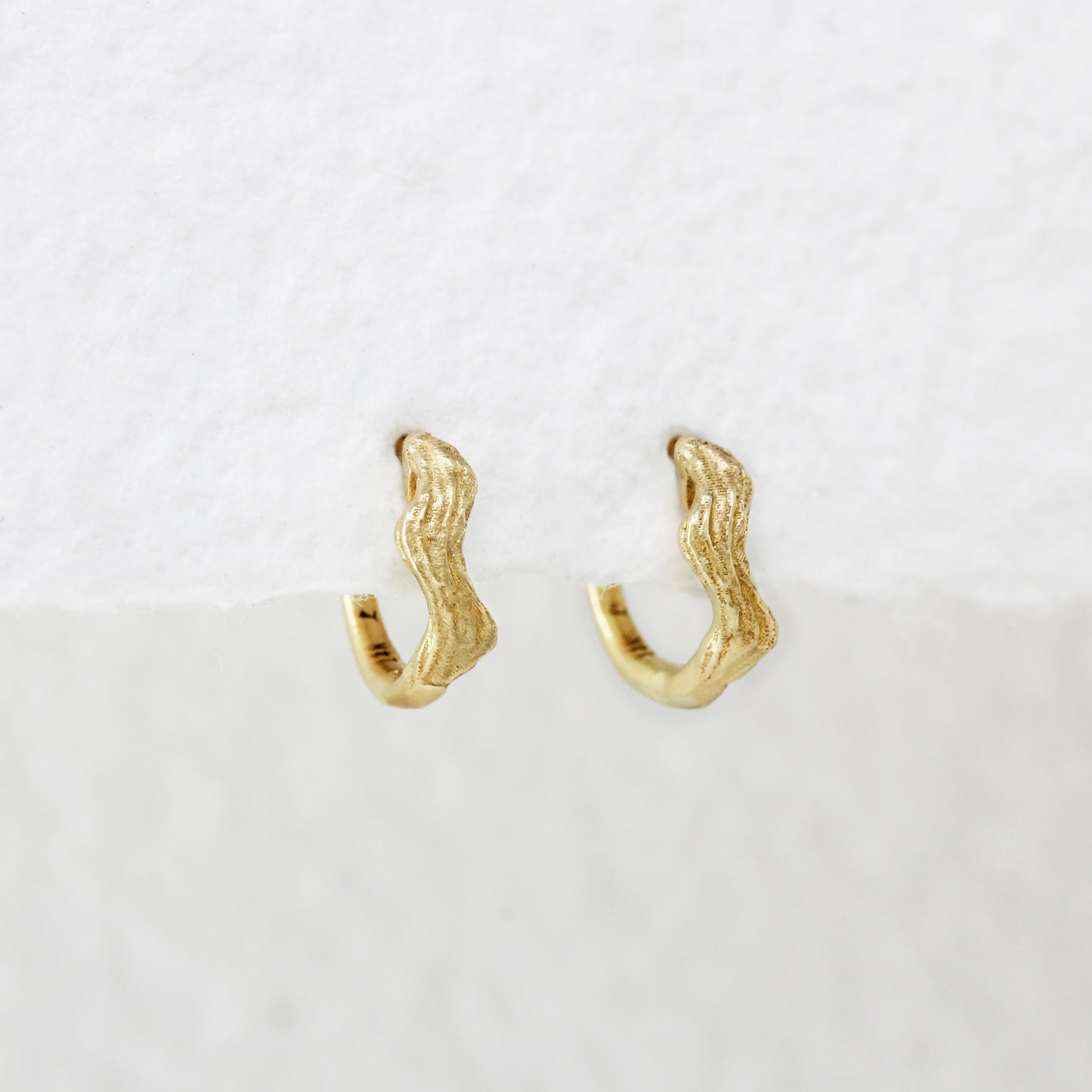 Inspired by Renoir’s short, wispy brushstrokes, the Renoir Breeze Hoop Earring Petite features feathery textures in creamy gold. This graceful piece is perfect for elevating any look with timeless artistry.