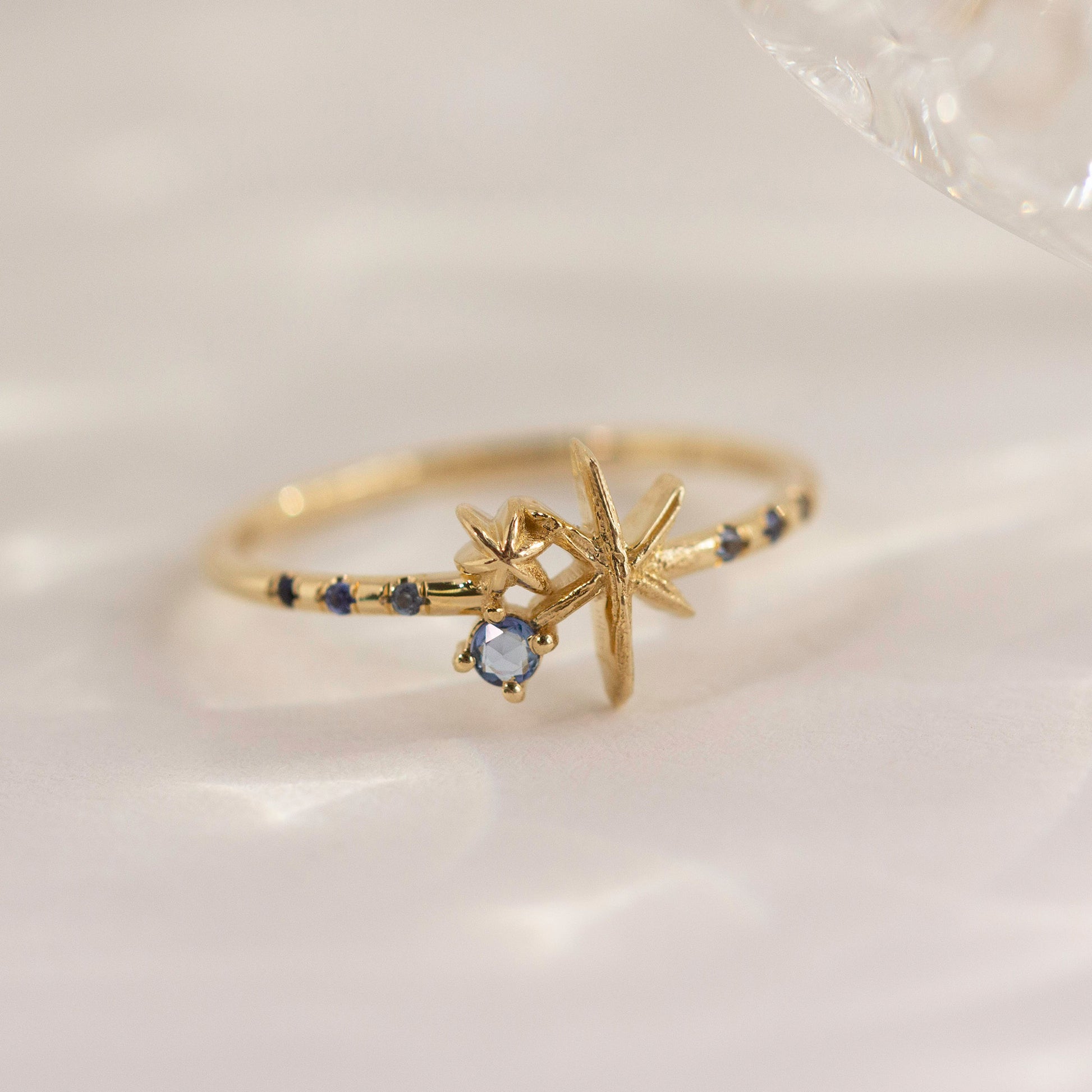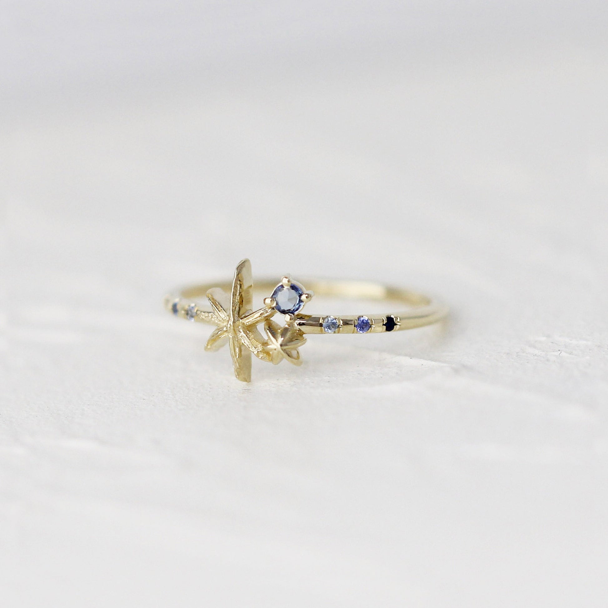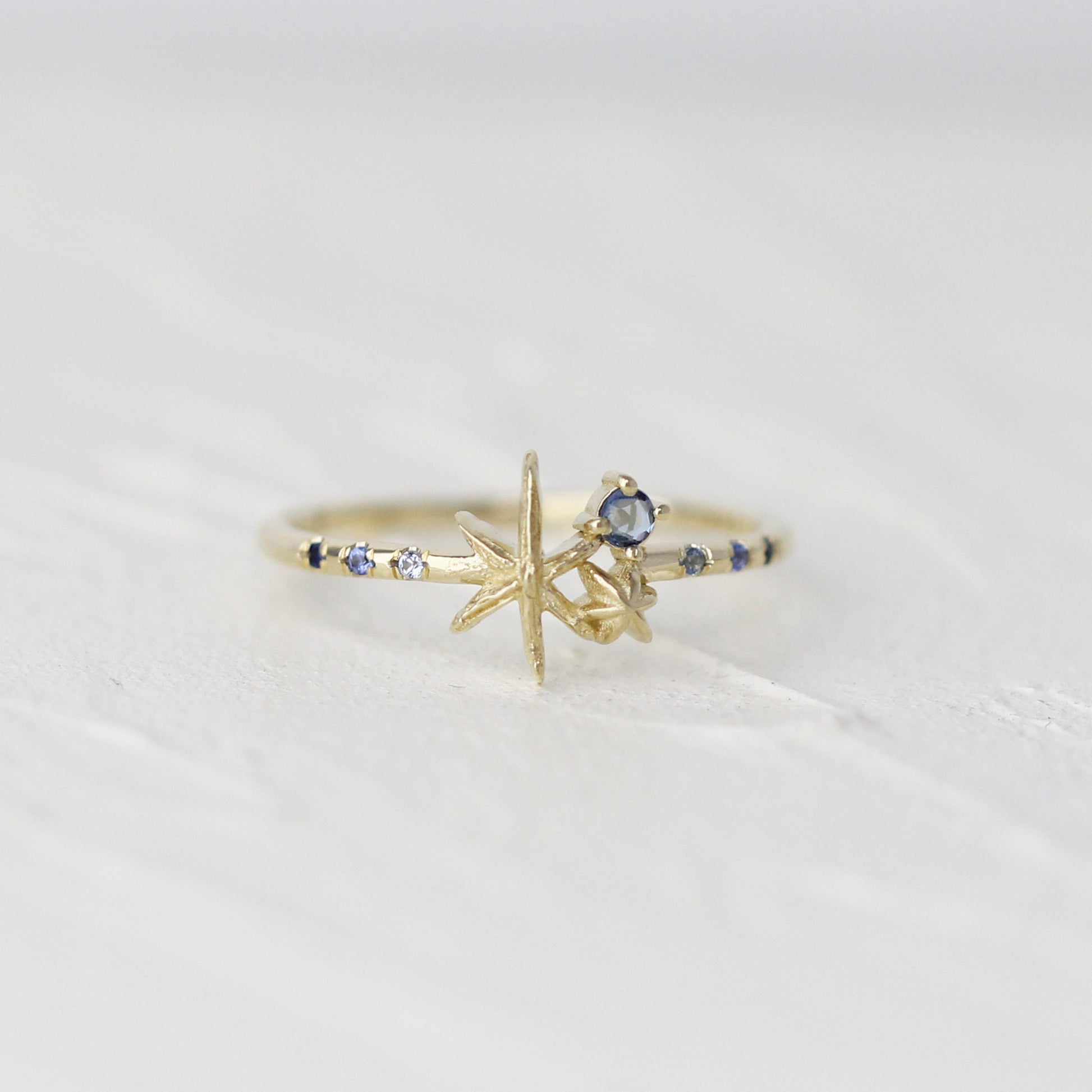 Inspired by the dreamy expanse of Van Gogh’s ethereal night skies, the Twilight Sky is a poetic tribute to celestial beauty. A smooth, plump star and a cobalt-blue sapphire sit next to a radiant, gold, brushstroke-textured star at its center. The shoulders glisten with a gradient of blue sapphires, creating a delicate and enchanting piece for nocturnal dreamers and artists alike.