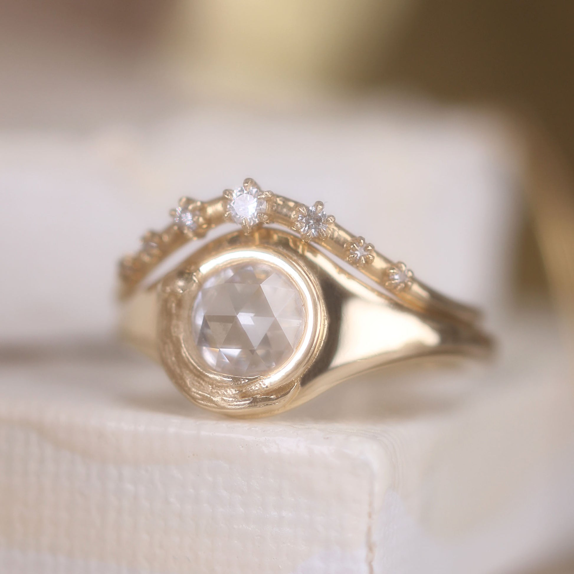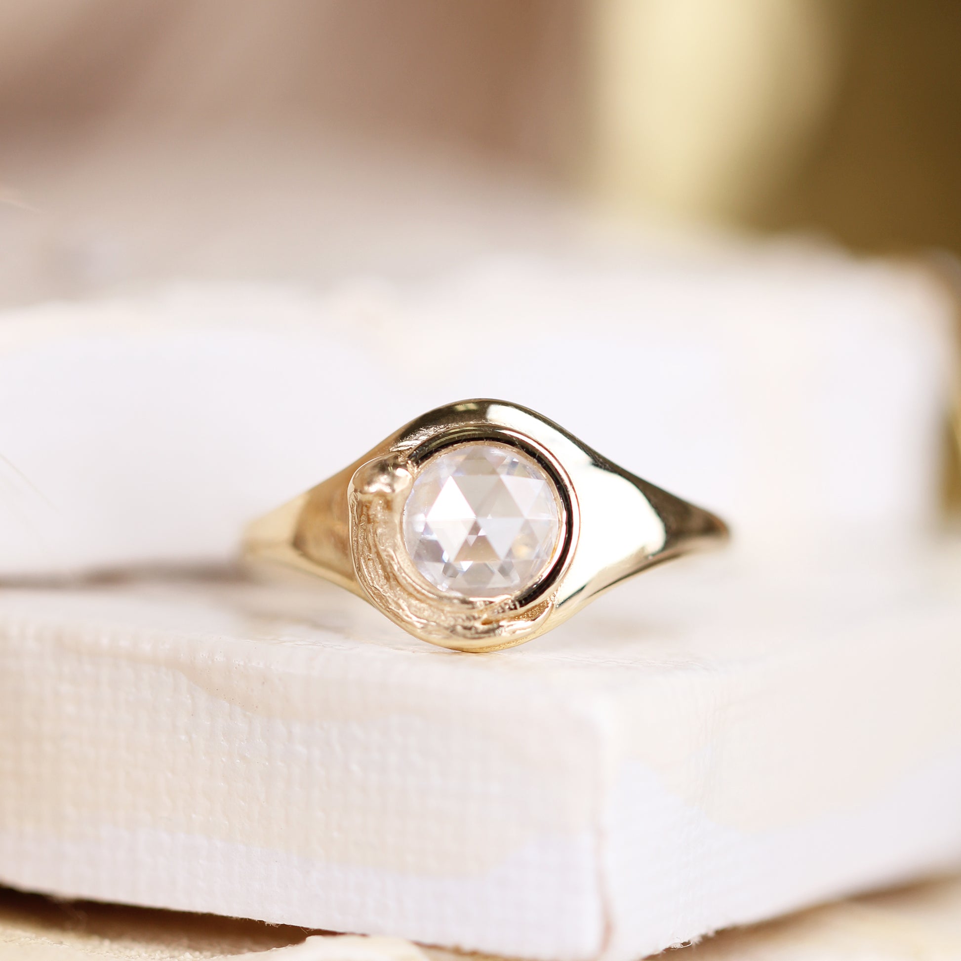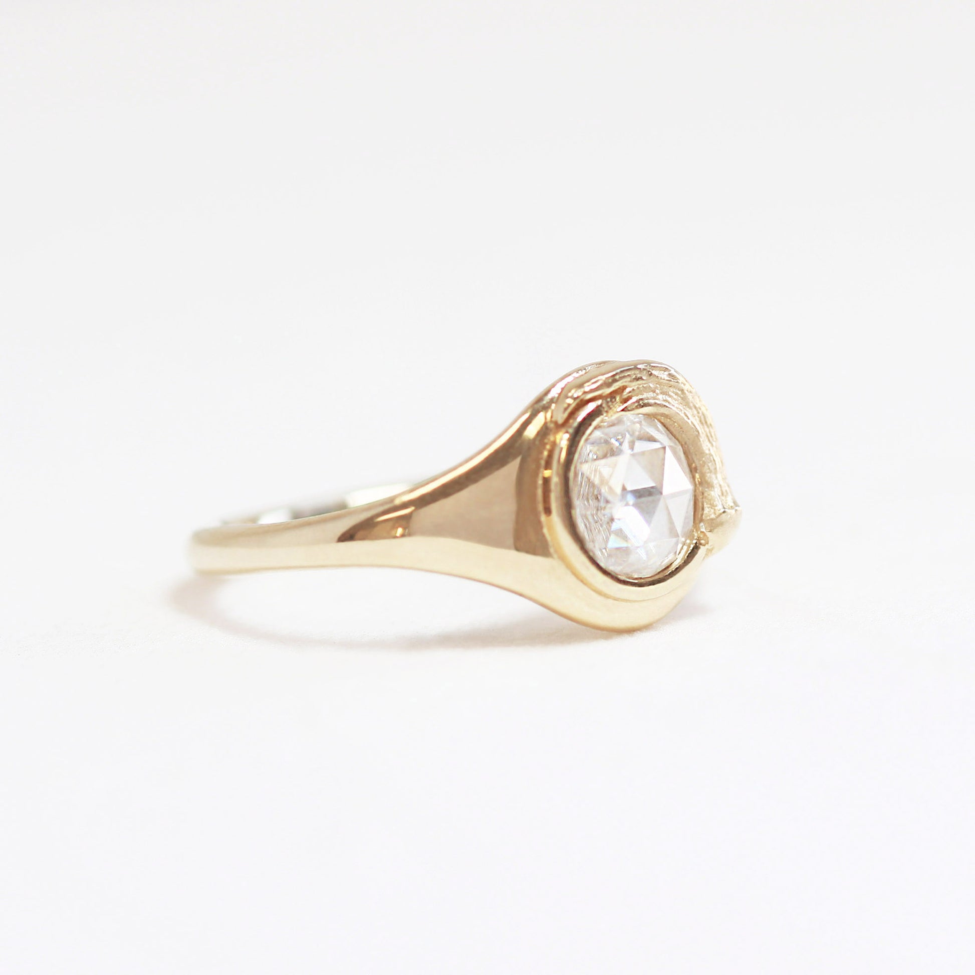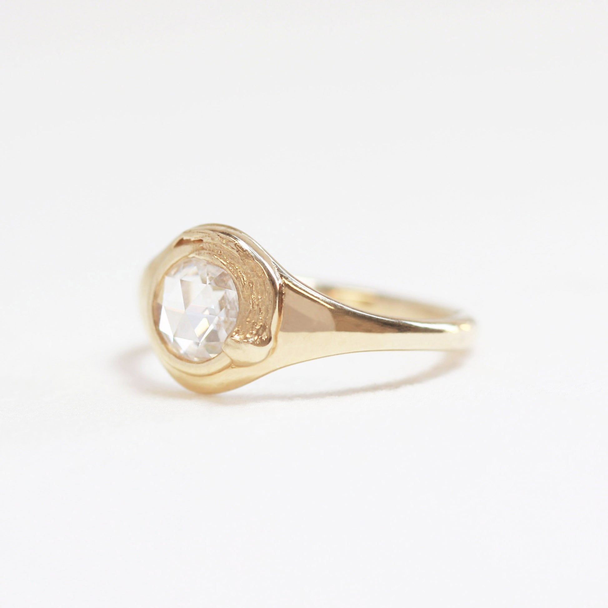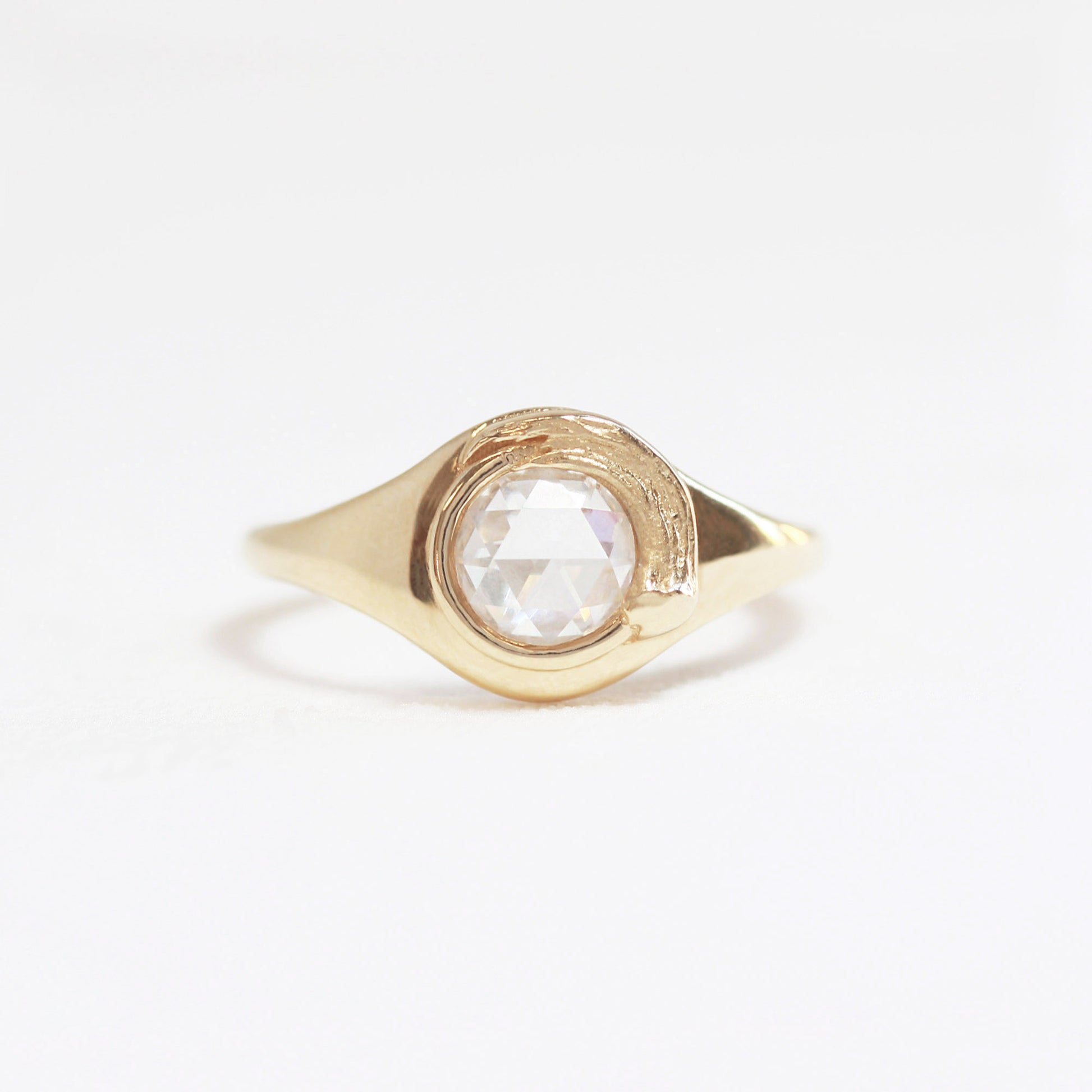 The Van Gogh signet ring is a masterpiece of subtle sophistication, inspired by the painter’s iconic impasto technique. A single velvety brushstroke of gold wraps gracefully around a rose-cut diamond, exuding effortless elegance. Smooth and buttery in texture, this versatile design is a staple for every fine jewelry collection, perfect for any occasion.